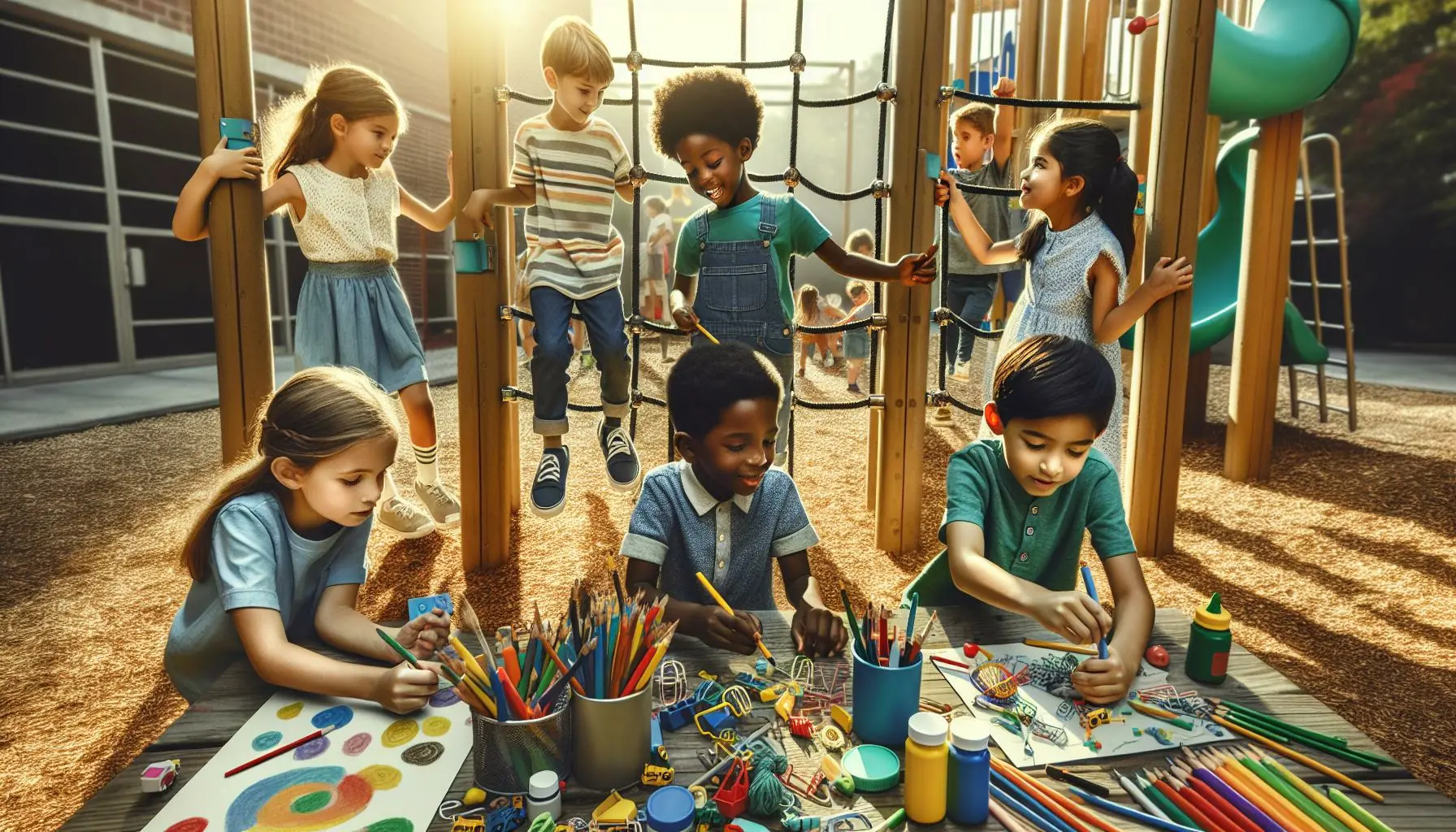- Structured play spaces encouraging social interaction